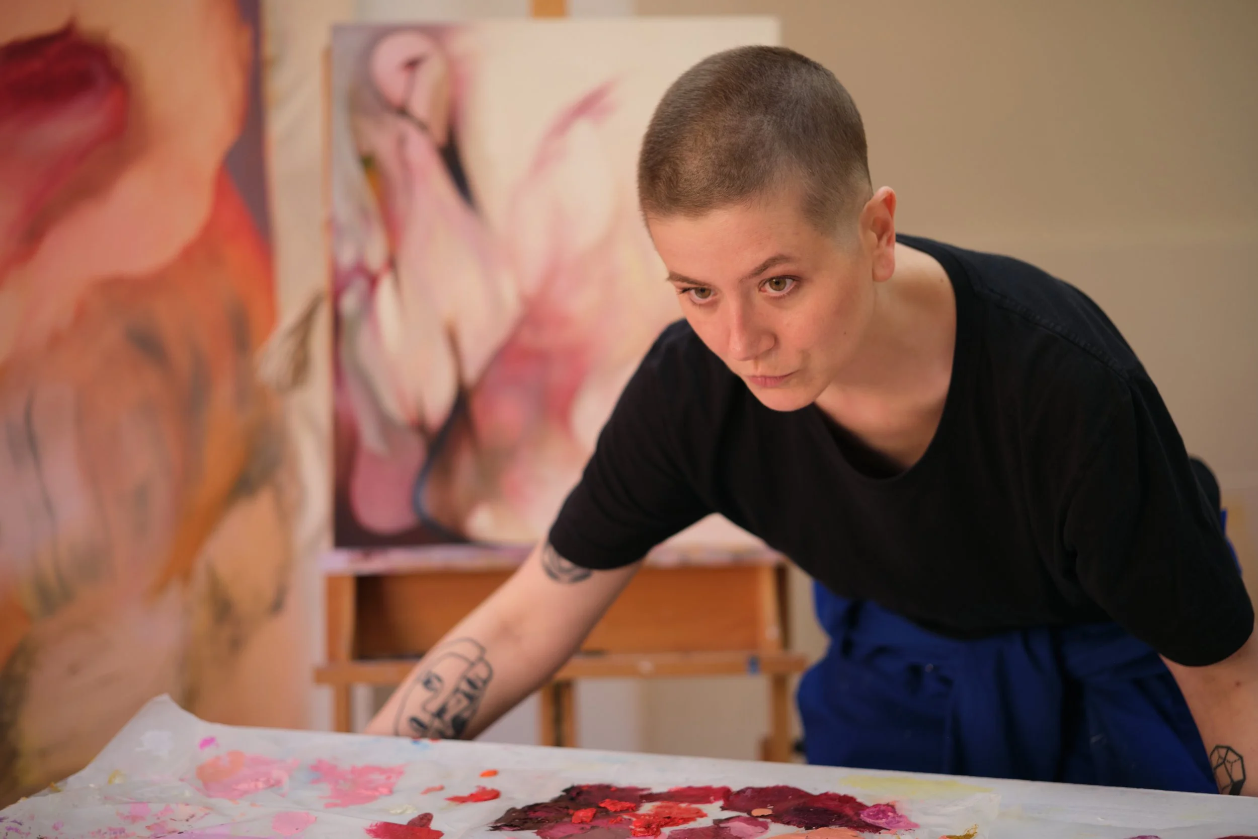 Kika Sroka-Miller’s artwork was first shown in October 2022 as part of the We are what we see exhibition alongside internationally established artists Michaela Stark, Floria Sigismondi and Sandro Kopp, a show organised by Glimpses of Art Agency during Frieze. Since then their work has been included in the Tenth Anniversary Auction of Art on a Postcard 2024, shortlisted for the Waverton Art Prize 2024, selected for the Assembly House Trust Biennial 2023 and been shown in multiple group shows and juried exhibitions around the UK. They are the Founder of Blue Parlour, a creative network and curatorial project sharing the work of artists exploring sexuality through their practice and Director of Awaiting Press which represents the literary estate of Assata Shakur.